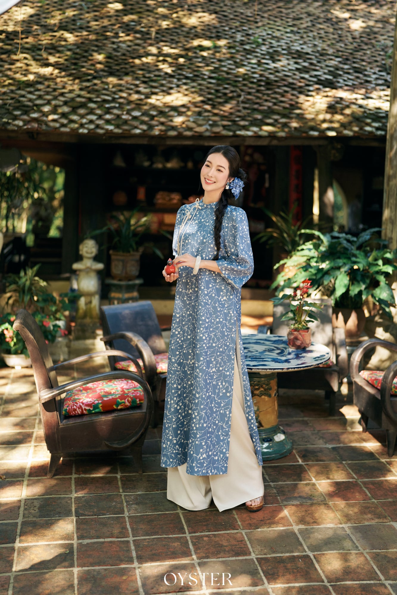 * Màu sắc: Hoa nền xanh