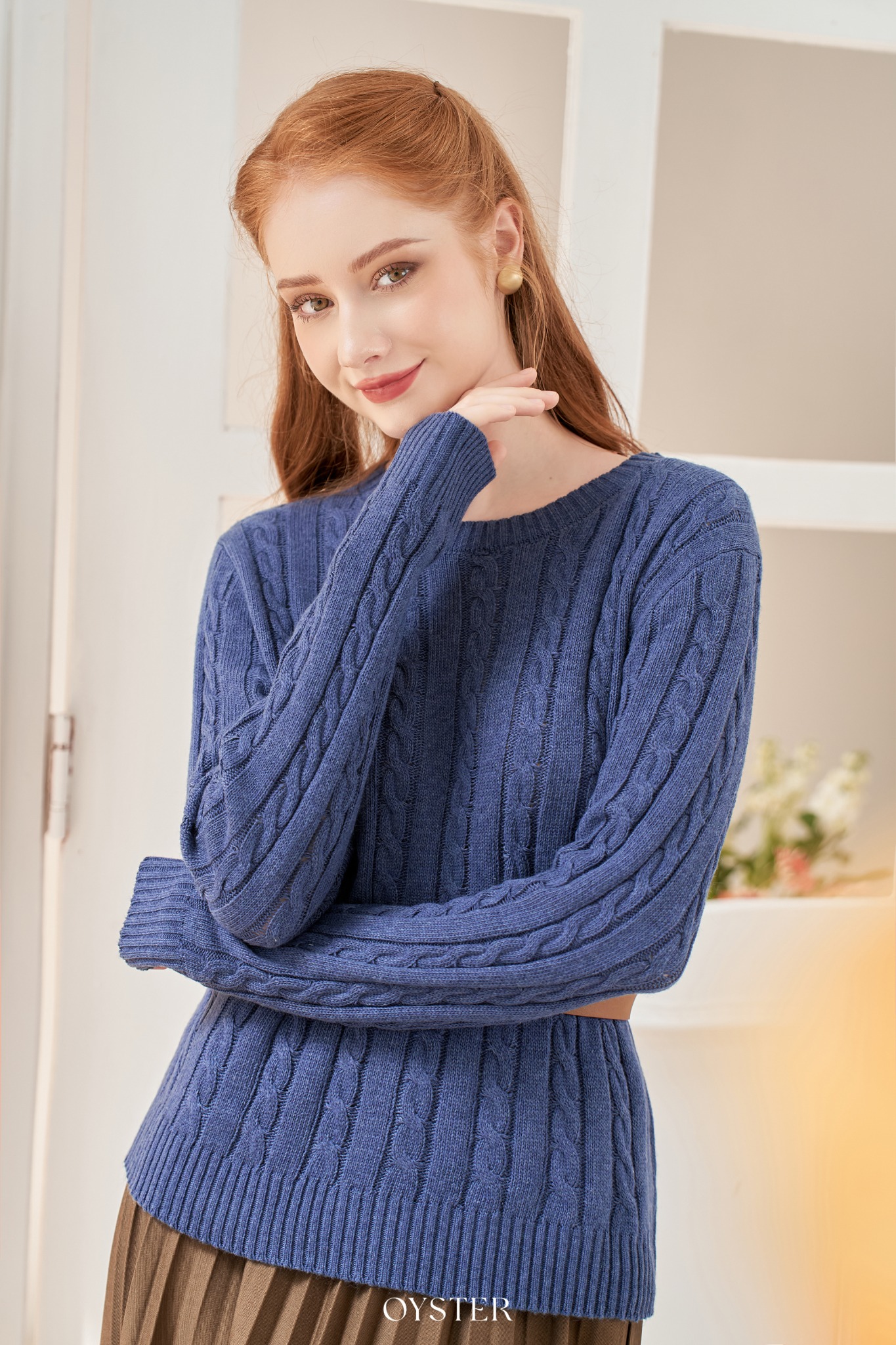 * Kiểu dáng: Áo len dáng suông, họa tiết vặn thừng