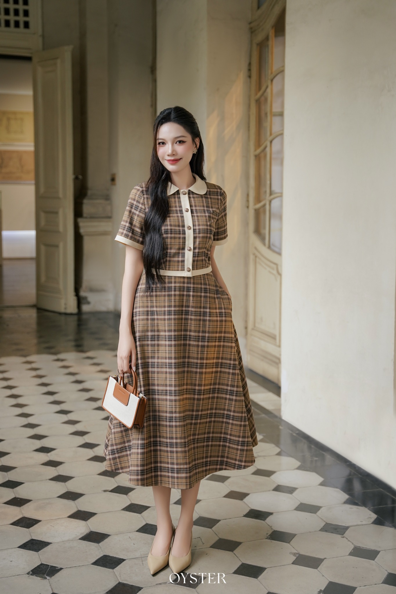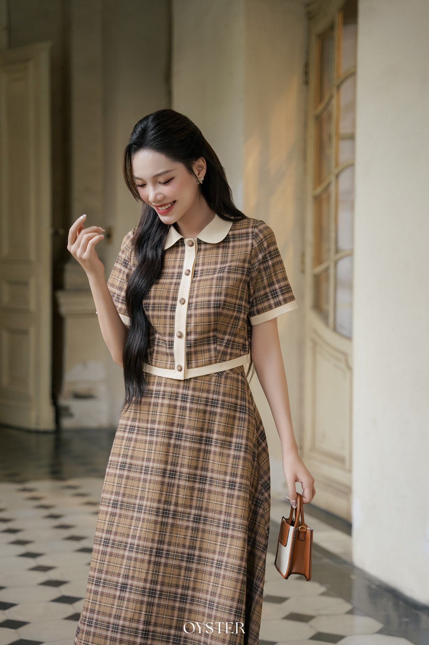 * Kiểu dáng: chân váy kẻ midi dáng suông