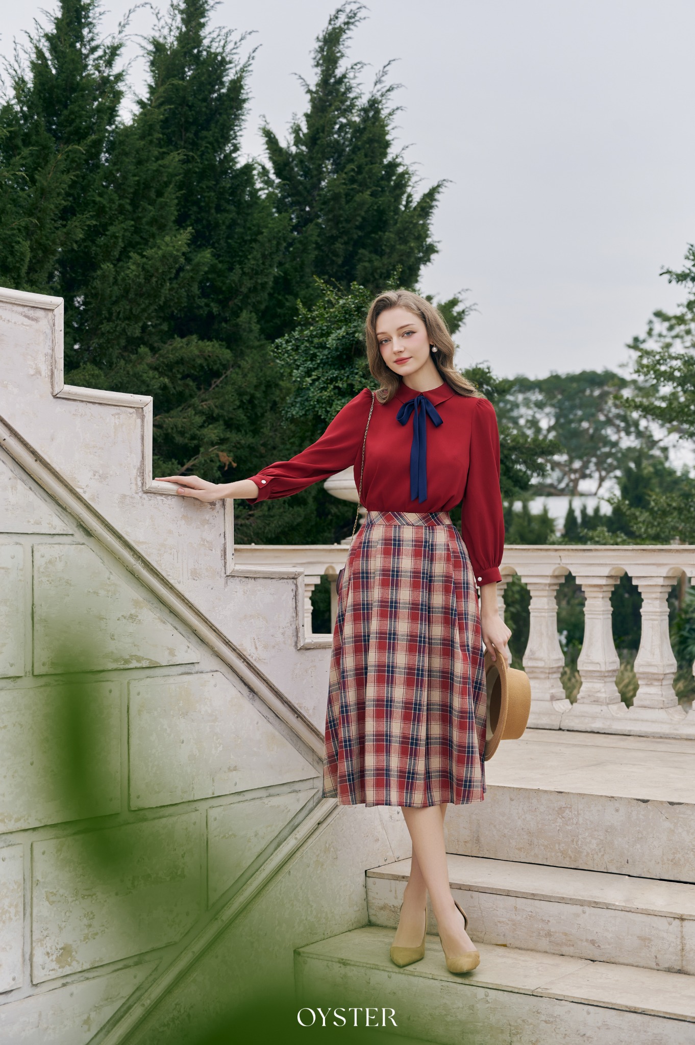 * Kiểu dáng: chân váy xếp ly bản lớn, dáng midi