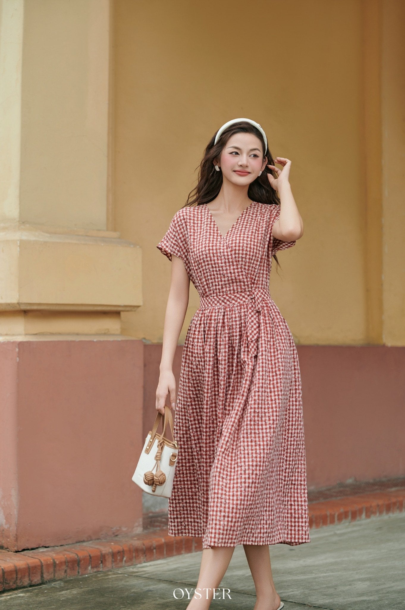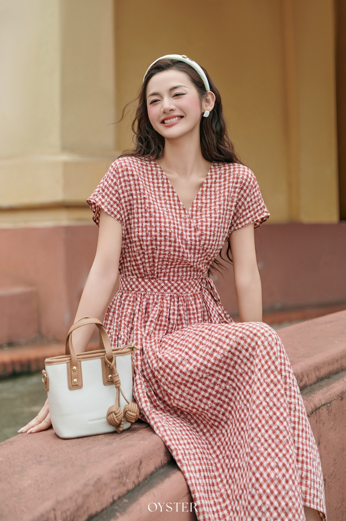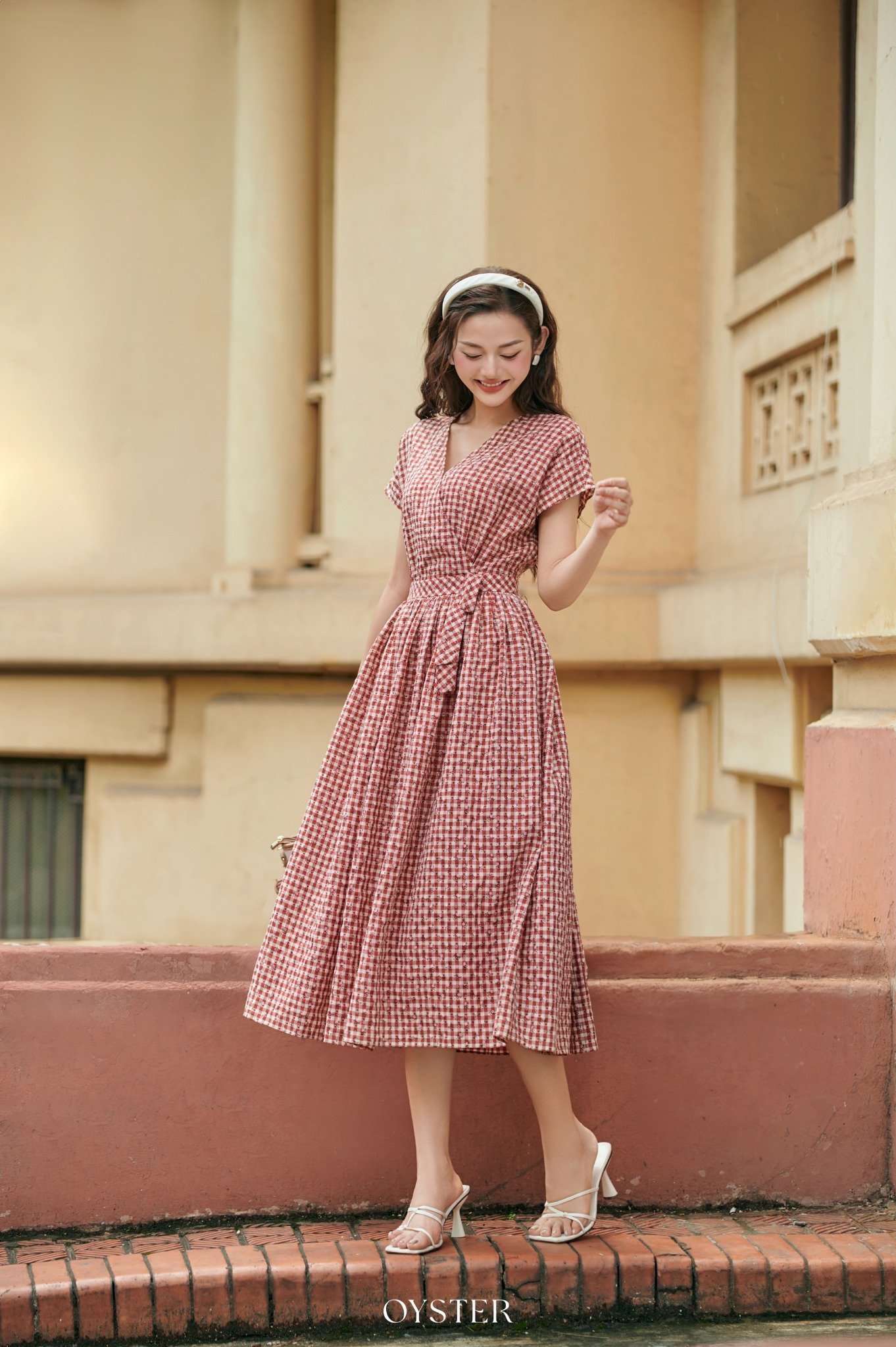 * Kiểu dáng: váy ngắn tay chiết eo thắt nơ, xếp ly đuôi cá