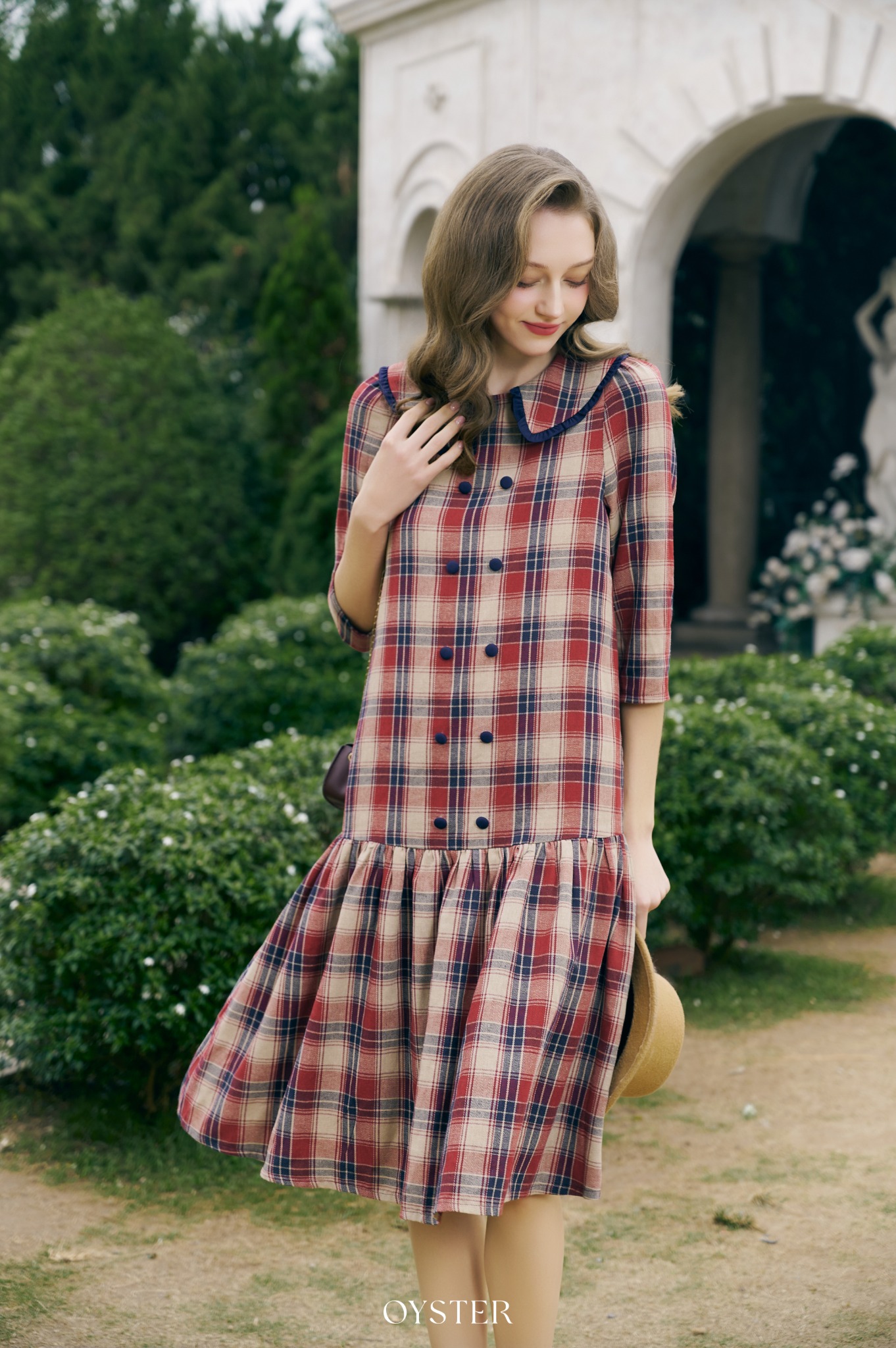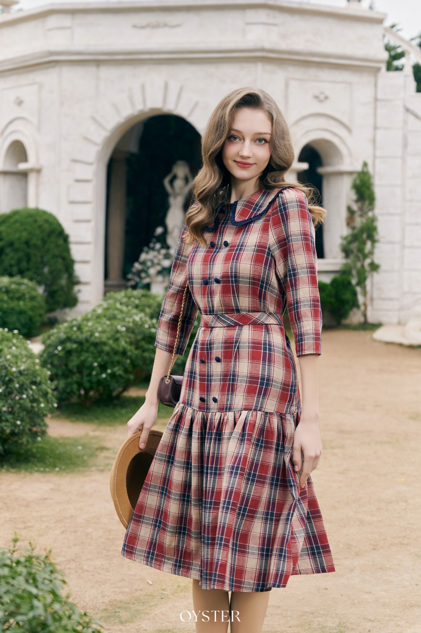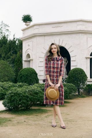 * Kiểu dáng: váy kẻ dài tay, cổ viền navy, kèm đai rời, chân váy đuôi cá