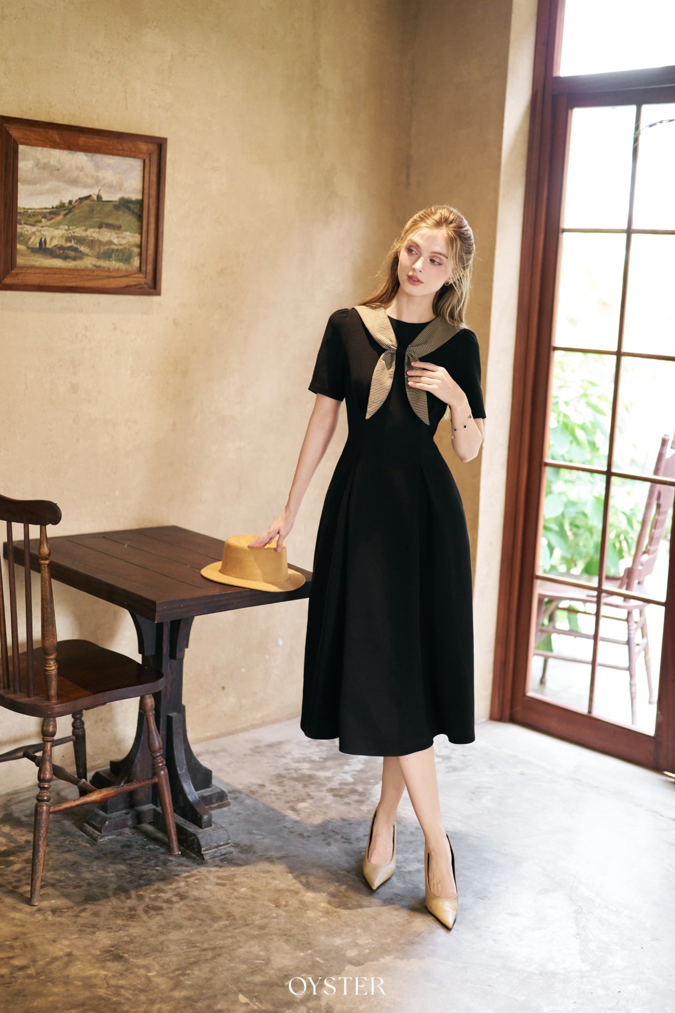 * Kiểu dáng: váy dài chiết eo cổ phối nơ cách điệu