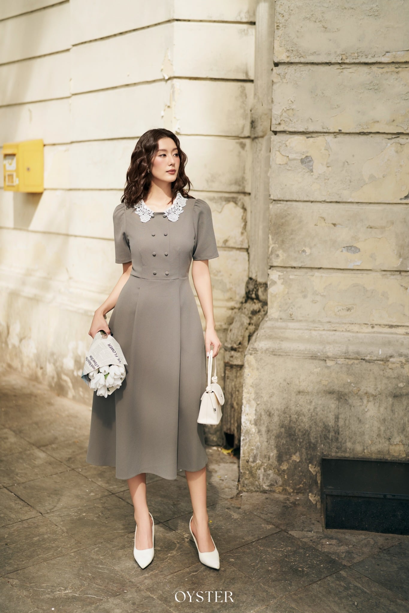 * Kiểu dáng: váy tay lửng cổ phối ren cách điệu