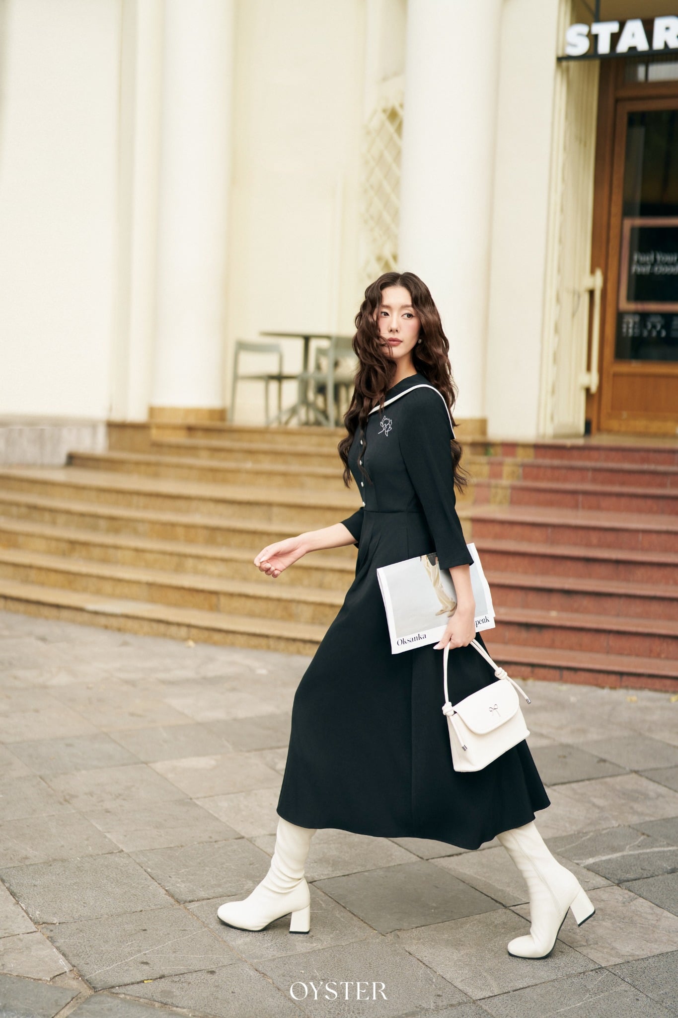 * Kiểu dáng: váy liền cổ thủy thủ cách điệu, tay dài