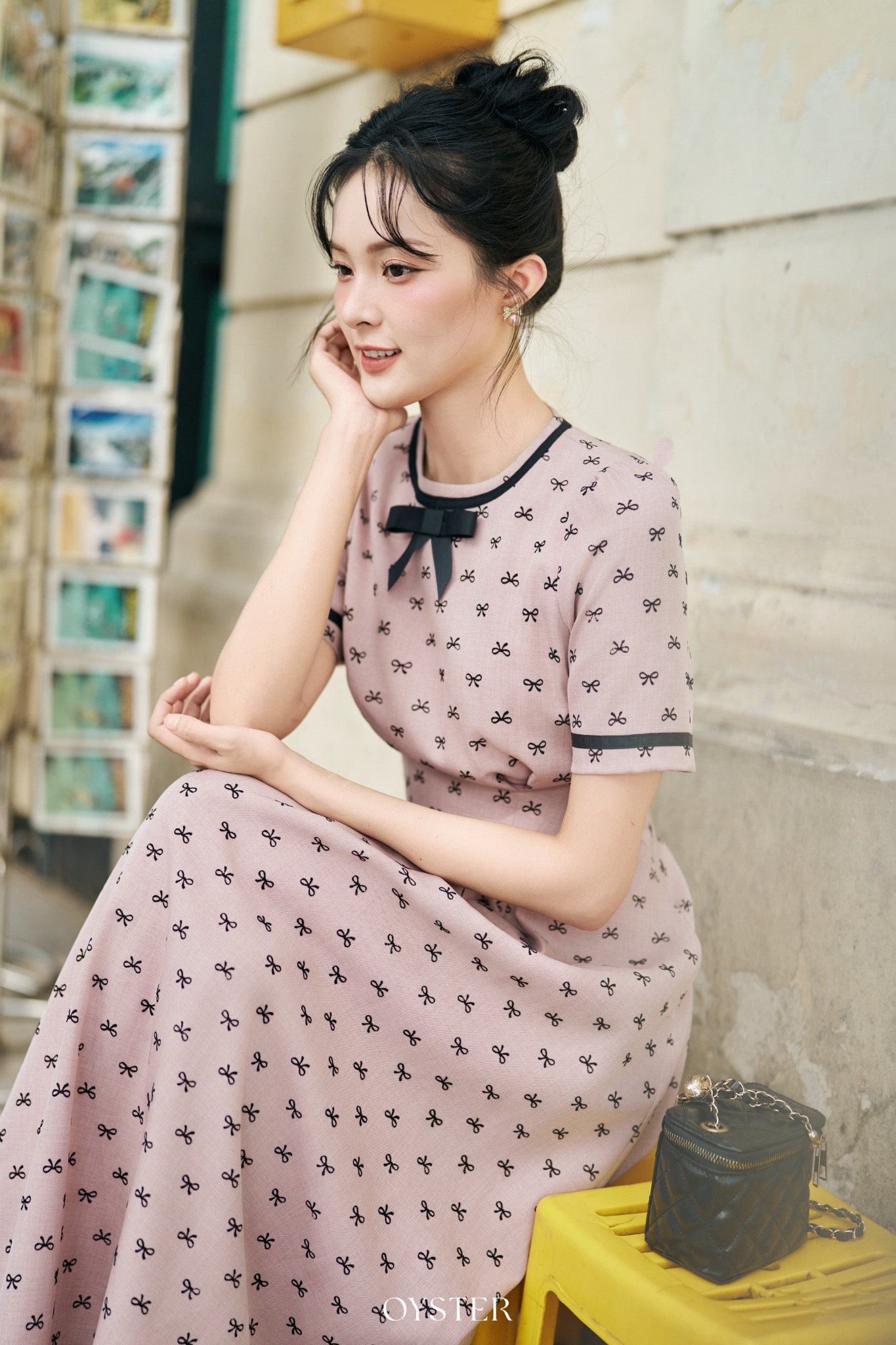 * Kiểu dáng: váy dài chiết eo, cổ phối cách điệu