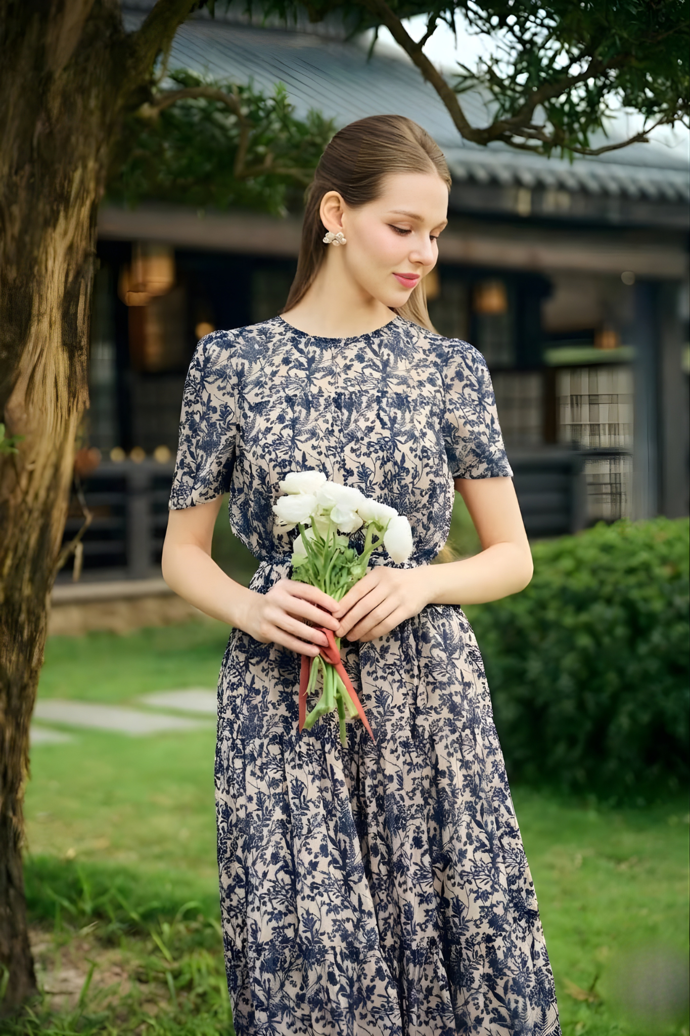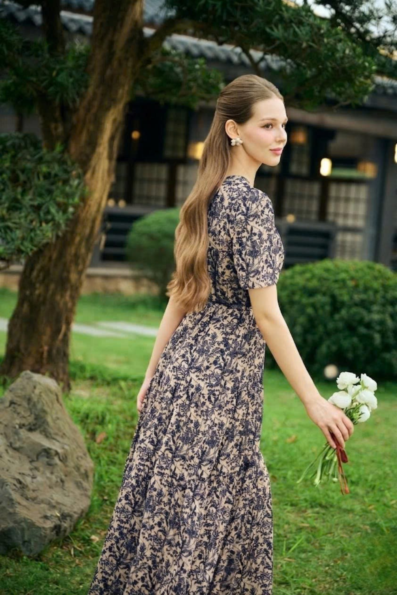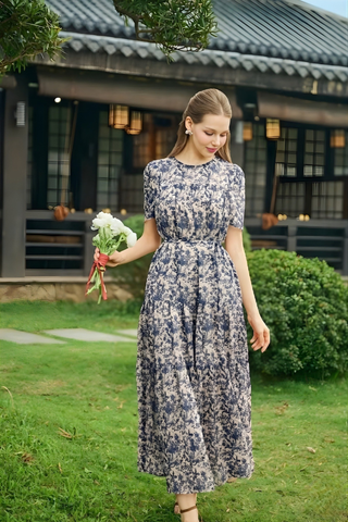 * Kiểu dáng: váy hoa tơ dáng suông kèm đai