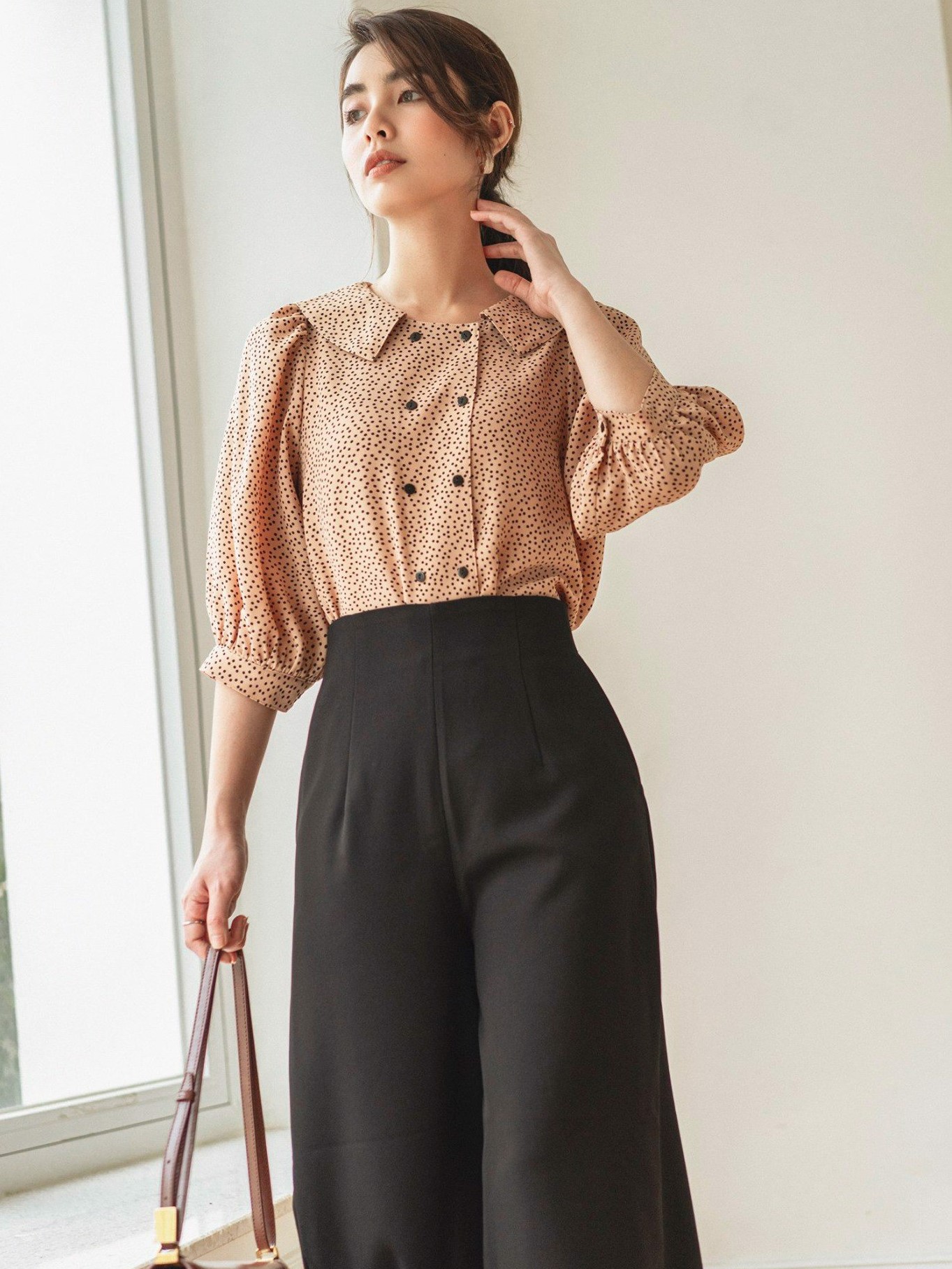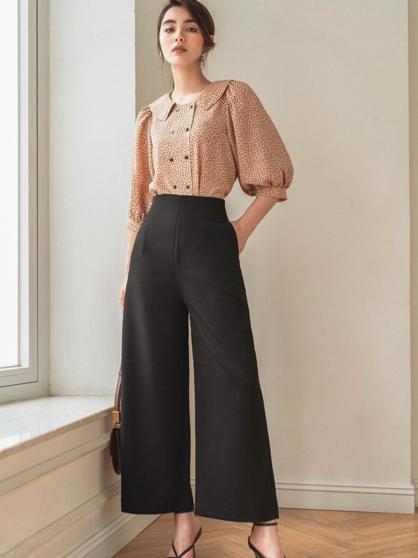 Quần ống rộng suông khóa sau lưng
